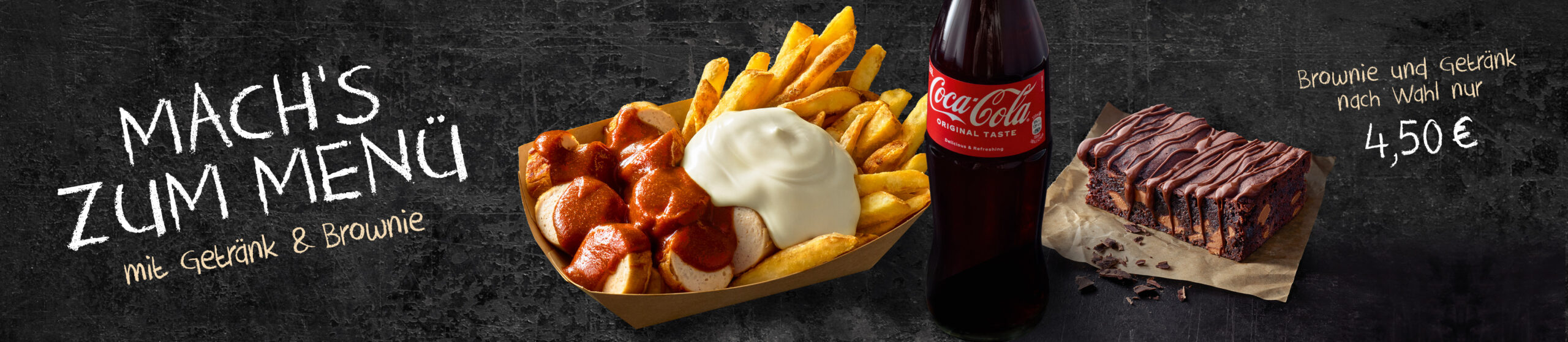 Der Klassiker vom Bratwursthaus Currywurst, Pommes und Salatmayo